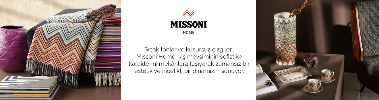 Missoni Home, ikonik zigzag desenleri, cesur renk paletleri ve zamansız İtalyan estetiğiyle Missoni Home, yaşam alanlarına güçlü bir karakter kazandırır. Tekstil ürünlerinden sofra koleksiyonlarına uzanan geniş seçkisiyle, evinizde enerjik, sofistike ve özgün bir atmosfer yaratır.