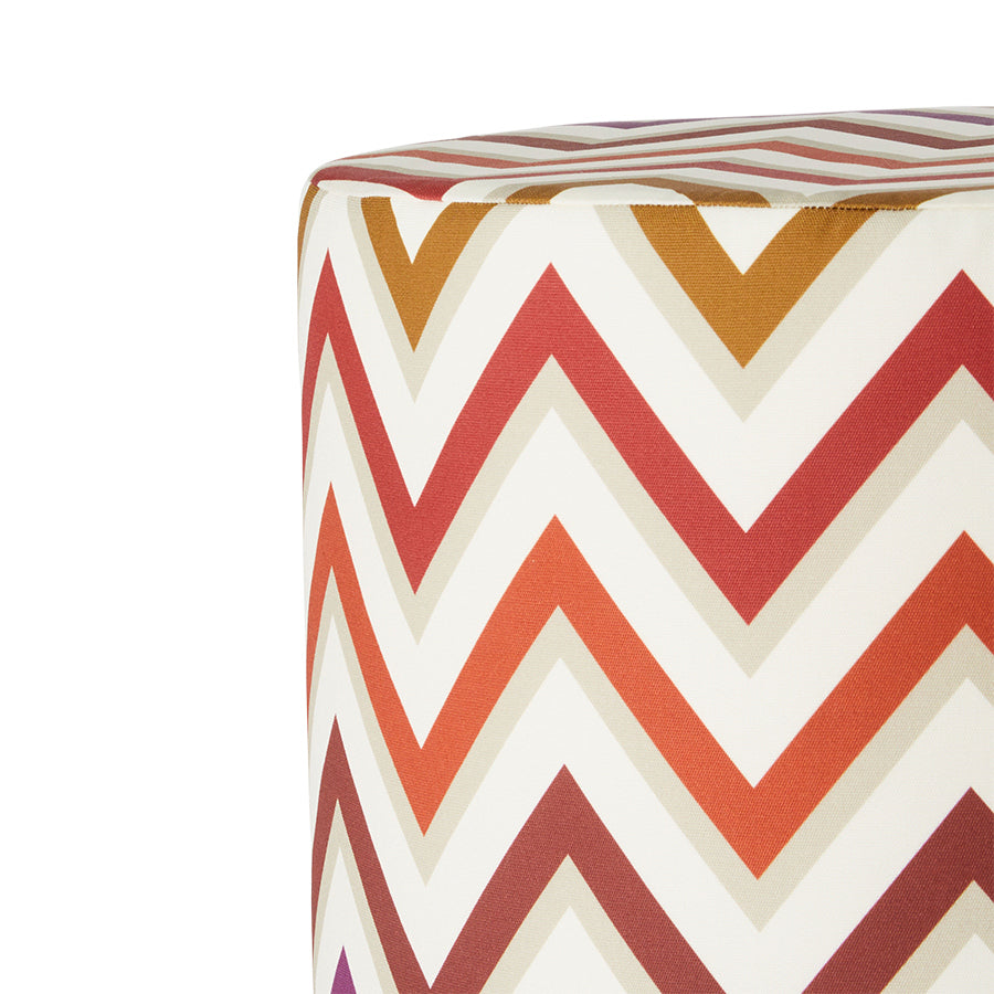 Kew Outdoor Turuncu Çok Renkli Zigzag Desenli Dış Mekan Yuvarlak Puf