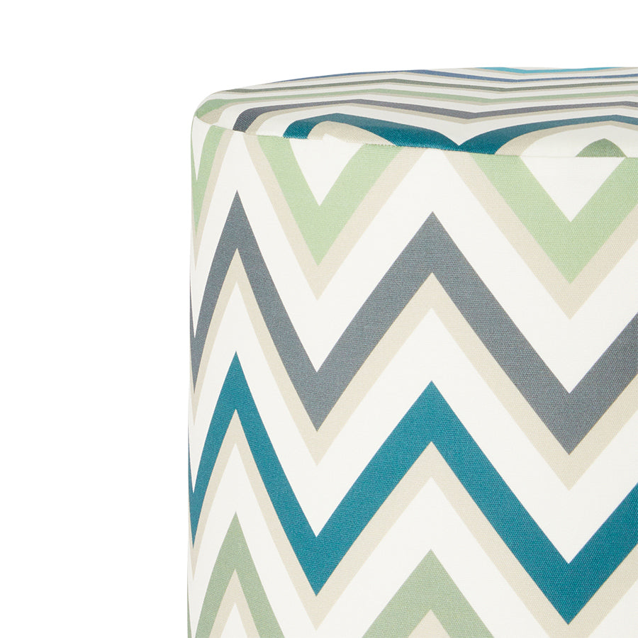 Kew Outdoor Turkuaz Çok Renkli Zigzag Desenli Dış Mekan Yuvarlak Puf