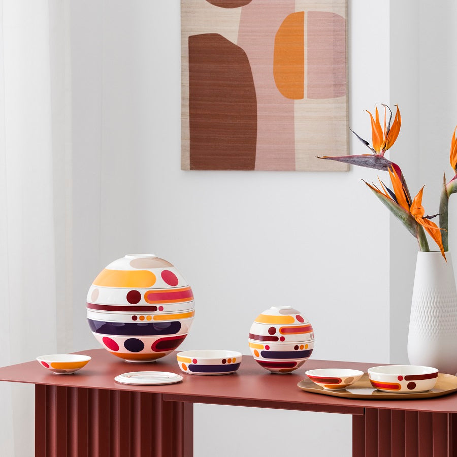 La petite Boule, 5 parçadan oluşan yenilikçi bir sunum setidir. Premium porselenden üretilmiş bu zarif koleksiyon, kaseler ve tabakların iç içe geçerek şık bir küre formu oluşturmasıyla dikkat çeker. Red Dot Tasarım Ödülü kazanmış tasarımı sayesinde hem modern hem de işlevsel bir seçenek sunar.