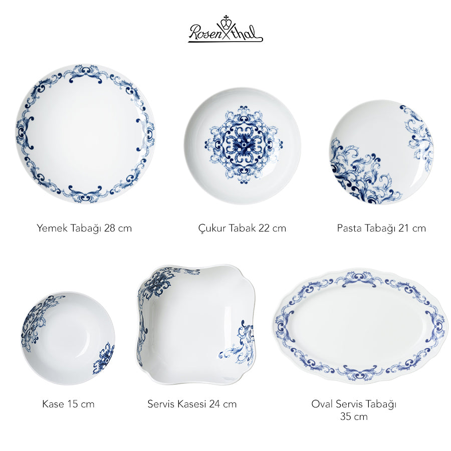 True Blue 12 Kişilik 51 Parça Porselen Yemek Takımı